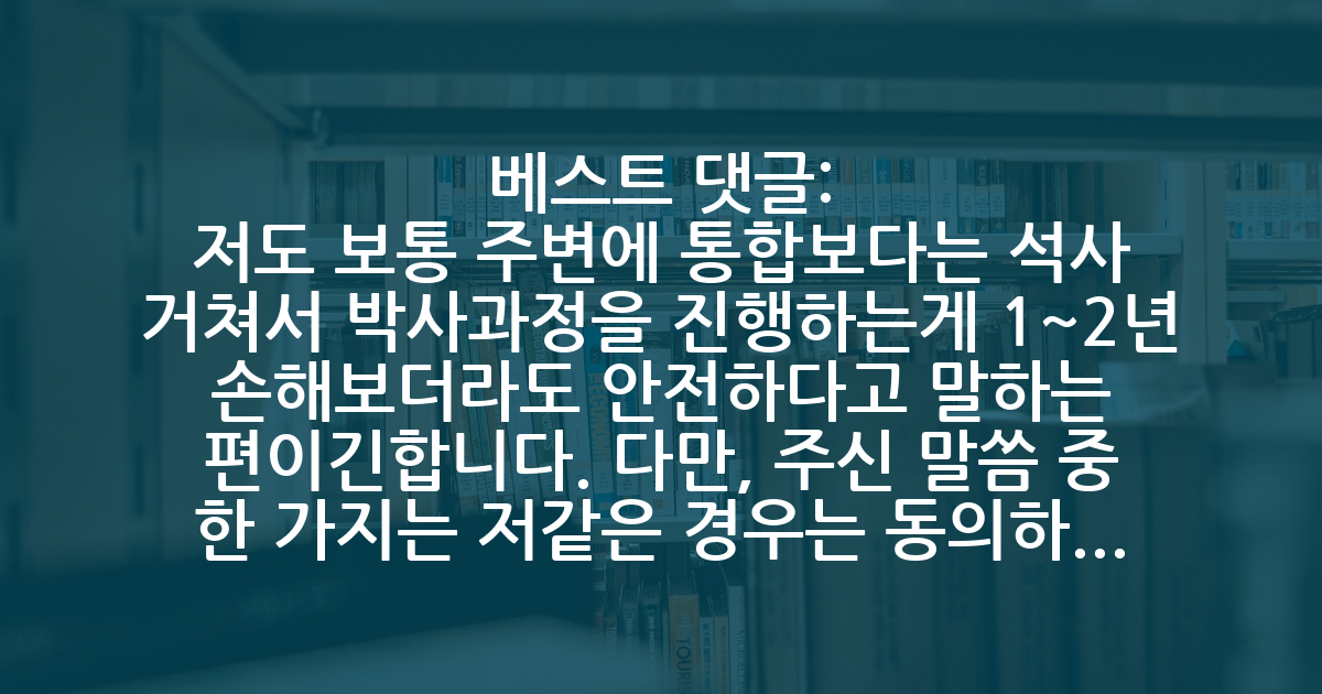 교수님께서는 내심 통합 과정을 원하시는 눈치라 결정이 더 조심스럽습니다. 선배님들에게 여쭙고 싶습니다. 저의 단순한 마음 가짐으로 도전을 해봐도 될 지 궁금합니다.