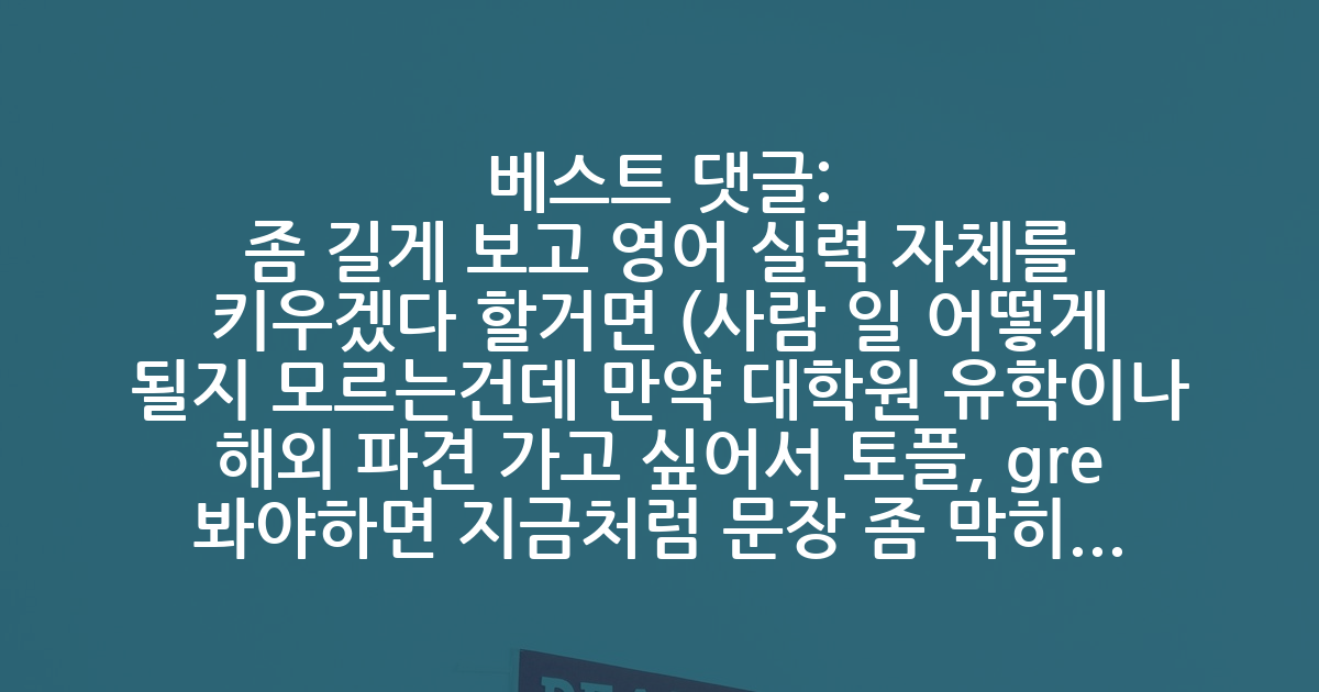 BEST좀 길게 보고 영어 실력 자체를 키우겠다 할거면 (사람 일 어떻게 될지 모르는건데 만약 대학원 유학이나 해외 파견 가고 싶어서 토플, gre 봐야하면 지금처럼 문장 좀 막히면 gpt 쓰고 이런 식으로 하면 안됨) 수능 3등급이면 무작정 논문 읽을게 아니라 그나마 시간 있을 때 영어 문장 분석하는 강의나 책 하나 붙잡고 정리하고 넘어가는게 좋음. 고딩으로 치자면 ㅇㅁㅎ 강사 신택스 같은거. 성인 대상 강의는 모르겠고 책은 짧은거는 “영어 글쓰기의 기본 The Elements of Style” 추천하고, 진짜 끝을 보겠다 그러면 ”옥스포드 실용어법사전 Practical English Usage” 좋음. 900쪽 넘어가긴 하는데 그래도 이것만 제대로 완독해도 토플 같은거는 그냥 씹어먹음. 그리고 3등급이면 영어 어휘력도 부족할텐데 말해보카 같은 앱이나 quizlet 들어가서 단어장 괜찮은거 찾아서 게임 하듯이 매일 꾸준히 해주면 좋음.