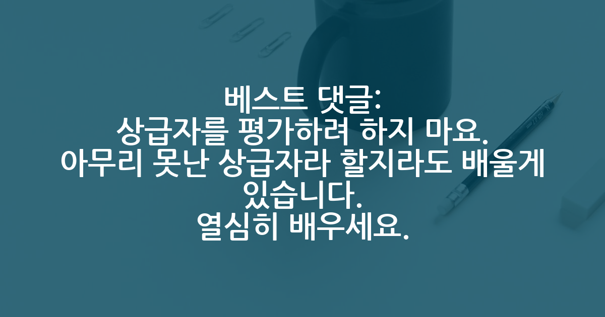 BEST상급자를 평가하려 하지 마요. 아무리 못난 상급자라 할지라도 배울게 있습니다. 열심히 배우세요.